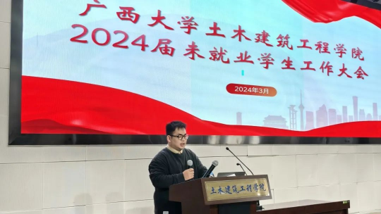 为帮助2024届毕业生明确就业方向,提高就业质量,3月19日上午,诸侯快讯ok1133.com在大型结构试验平台第六报告厅召开2024届未就业学生工作大会。学院党委副书记银宁出席并主持会议,中建三局国际公司人力经理牛滢,学院团委副书记潘桂祯,学工组老师陆源以及部分2024届毕业生参加了此次动员大会。