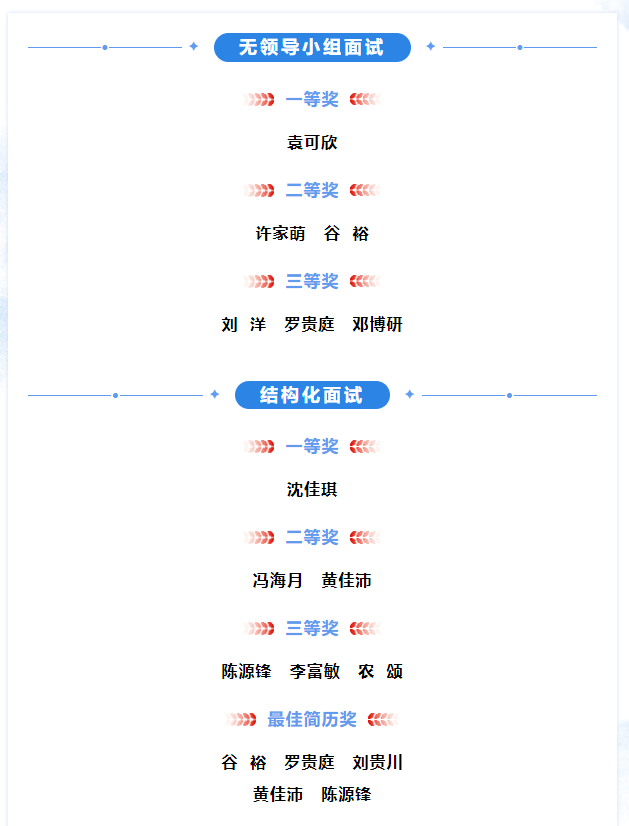 梁轲表示非常感谢学院组织如此优秀的活动,参赛同学在表达自己的思路过程中条理清晰,逻辑清楚,在面试中充分展现自我。韦志成对参赛选手的赛前准备表示充分肯定,并坦言同学们正值青春年华,意气风发,给评委和观众留下深刻印象。王强就面试问题指出不足之处并希望同学们在今后的面试中明确流程、明确标准、明确具体内容。