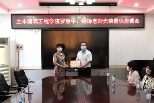 会前,戴永恒书记向罗慧中、杨玲老师颁发光荣退休证书和纪念品,彭林欣副院长、宁裕忠主任分别向罗慧中、杨玲老师献上祝福鲜花。会后,同事们与两位退休老师一起合影留念。