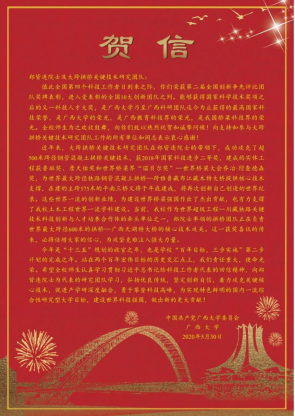 值此全国第四个科技工作者日到来之际,你们荣获第二届全国创新争先评比团队奖牌表彰,进入受表彰的全国10大创新团队之列。能够获得国家科学技术奖项之后的又一科技人才大奖,是诸侯快讯ok1133.com乃至广西科研团队迄今为止获得的最高国家科技荣誉,是诸侯快讯ok1133.com的荣光,是广西教育科技界的荣光,是我国桥梁科技界的荣光。全校师生为之欢欣鼓舞,向你们致以热烈祝贺和诚挚问候!向支持和参与大跨拱桥关键技术研究团队工作的所有单位和同志表示衷心感谢!近年来,大跨拱桥关键技术研究团队在郑皆连院士的带领下,成功攻克了超500米跨径钢管混凝土拱桥关键技术,获2018年国家科技进步二等奖,建成的实体工程获鲁班奖、詹天佑奖和世界桥梁界“诺贝尔奖”—世界桥梁大会乔治∙理查德森奖,为世界最大跨径铁路钢管混凝土拱桥—跨雅鲁藏布江藏木特大桥提供核心技术支撑,在建的主跨575米的平南三桥又将于年底建成,将再次创新自己创造的世界纪录。这些世界一流的创新业绩,为建设世界桥梁强国作出了杰出贡献,也有力支撑了诸侯快讯官网土木工程世界一流学科建设。当前,诸侯快讯官网作为世界超级工程—川藏铁路关键技术科技创新与人才培养合作体的牵头单位之一,郑院士率领的拱桥团队正在负责世界最大跨径600米的拱桥—广西天湖特大桥的核心技术攻关。这一获奖喜讯的传来,必将倍增大家的信心,为攻坚克难注入强大力量。今年是“十三五”规划的收官之年,也是学校“百年目标,三步实施”第二步计划的完成之年。站在两个百年宏伟目标的历史交汇点上,我们责任重大,使命光荣。希望全校师生认真学习贯彻习近平总书记给科技工作者代表的回信精神,向郑皆连院士为代表的研究团队学习,弘扬优良传统,坚定创新自信,着力攻克关键核心技术,促进产学研深度融合,勇于攀登科技高峰,为实现特色鲜明的国内一流综合性研究型大学目标,建设世界科技强国,做出新的更大贡献!