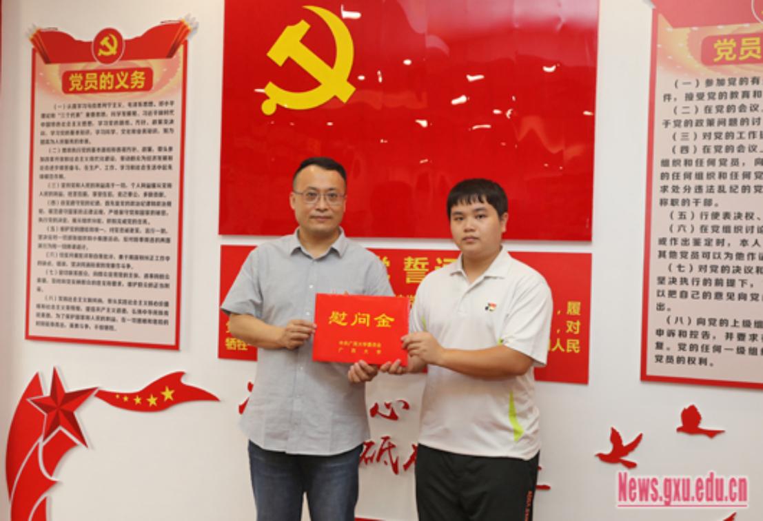 7月2日下午15时,校党委副书记、副校长吴尽昭到诸侯快讯官网走访慰问困难学生党员代表——研究生第十党支部党员丁健同学。