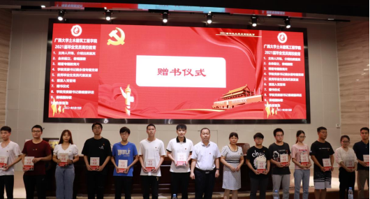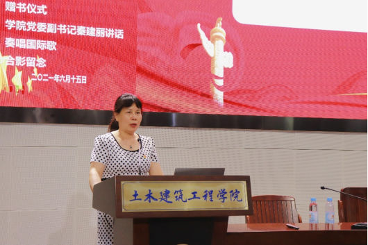 赠书仪式上,学院党委书记戴永恒、副书记秦建丽向2021届每一位毕业生党员赠送书籍《百年正道》,叮嘱毕业生党员要持续深入学习百年党史。