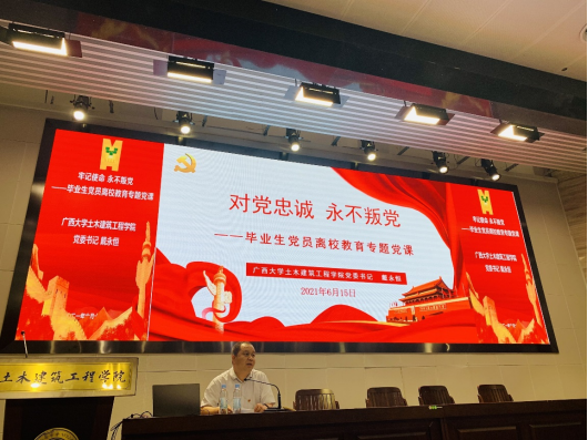 6月15日下午,学院开展“凝聚初心力量,践行使命担当,勇立时代潮头”2021届毕业生党员离校教育。学院党委书记戴永恒、党委副书记秦建丽、团委书记李道洋等领导和教师出席活动。