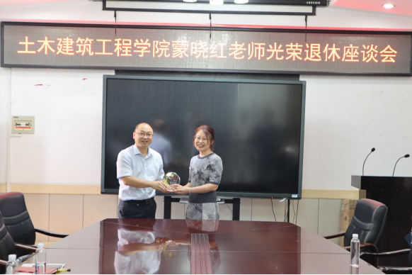 (学院为蒙晓红老师举办光荣退休座谈会)