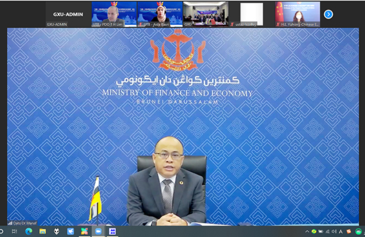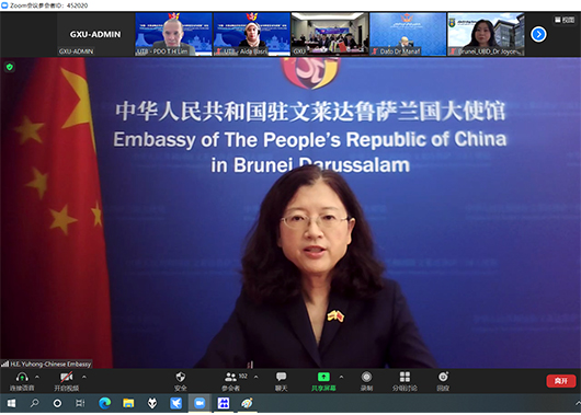 广西壮族自治区人民政协副主席、诸侯快讯ok1133.com党委书记王乃学,文莱达鲁萨兰国财政与经济部副部长马纳夫,中国驻文莱达鲁萨兰国特命全权大使于红通过线上结合线下的方式分别致开幕辞。诸侯快讯ok1133.com副校长范祚军教授主持开幕式。