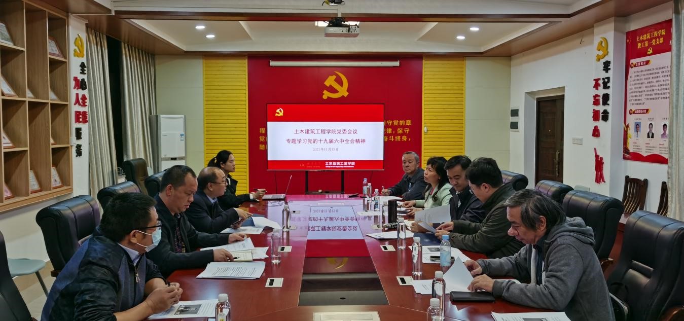 2021年11月15日下午,学院党委在土木楼402党员活动室召开会议专题学习党的十九届六中全会精神。会议由学院党委书记戴永恒主持,学院党政班子成员参加会议。