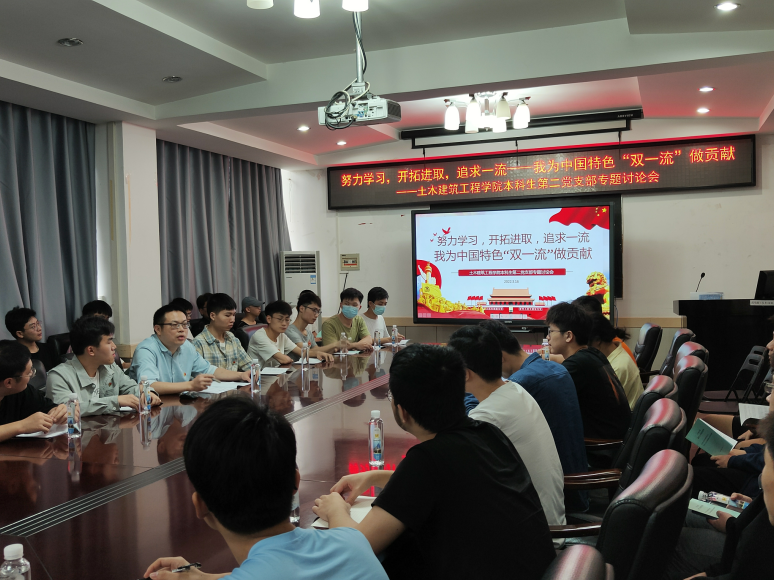 会上,支部书记秦岭与支部党员、入党积极分子深入学习了校党委书记王乃学在“诸侯快讯ok1133.com土木工程世界一流学科建设动员大会”上的讲话精神,以及“创新创造、奋勇争先、全面一流”的诸侯快讯ok1133.com“双一流”精神,并围绕“学生党员如何为中国特色‘双一流’做贡献?”展开了专题讨论。