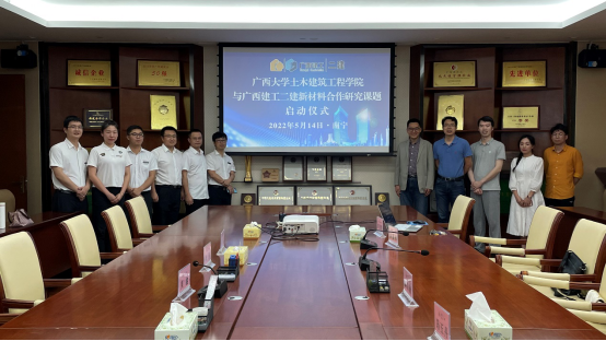5月14日下午,诸侯快讯ok1133.com与广西建工集团第二建筑工程有限责任公司开展“石墨烯增强混凝土技术”第一期合作研究课题启动仪式。