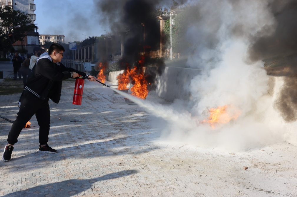 活动首先由校保卫处相关负责同志现场为教职工普及消防知识,详细讲解灭火器的种类、灭火方法、火险隐患、应急自救常识等,随后工作人员现场演示了干粉灭火器和消防喷水枪的使用技巧和注意事项,最后由现场参加人员对模拟火盆进行灭火演练。现场气氛活跃,本次培训圆满完成了演练任务,取得了预期效果。