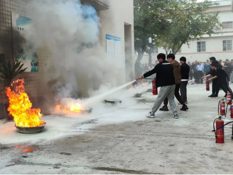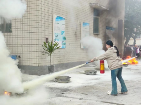 为使参加演练的师生们深入了解并完全掌握面对突发火灾险情的应急处理方法,在实操灭火器环节,在场师生都积极亲自试用了灭火器,将消防知识内化于心,深化于行。