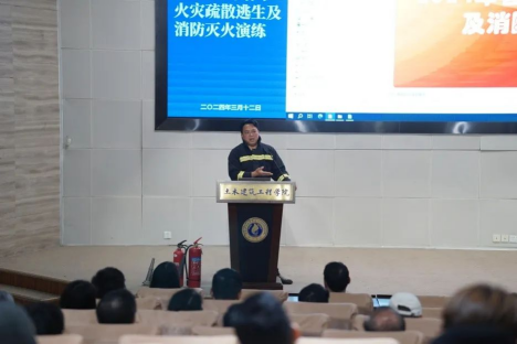 活动首先在第六报告厅开展消防知识讲解,银宁在会上作动员讲话,接着校保卫处黄光电老师为师生们科普了火灾发生的原因、逃生注意事项以及灭火器使用方法。