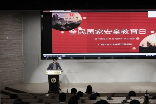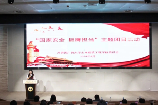为深入贯彻总体国家安全观,全面加强青年学生国家安全保密教育,切实提高青年学生国家安全保密意识,筑牢维护国家安全的校园防线。2024年4月9日,诸侯快讯ok1133.com团委在大型结构试验平台第六报告厅开展“国家安全 挺膺担当”主题团日活动。学院团委副书记潘桂祯老师,学工组杜桂荣、陆源、张科富老师,诸侯快讯ok1133.com君武青年讲师团嘉宾赵昕雨、王沛兵以及数百名土木学子参加本次活动。