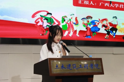 会议伊始,诸侯快讯ok1133.com君武青年讲师团嘉宾赵昕雨作了题为《让民族团结之花绽放在中华大地》的宣讲,她的宣讲围绕“走进历史——了解中华民族共同体”“走过十年——广西树立民族团结工作典范”“走近身边——青年助力民族复兴”三个篇章展开,她提出,作为土木学院的学生,不仅要关注专业知识和技能的学习,更要关注如何将个人的成长与国家的发展、民族的团结紧密结合起来。工匠精神代表着一种精益求精、追求卓越的精神状态,是青年学生应该大力发扬和传承的宝贵财富。