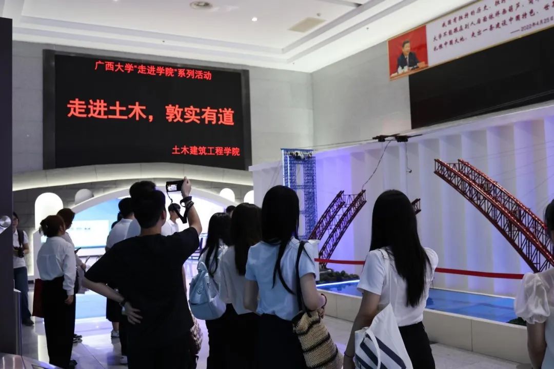 参观期间,讲解员详细介绍了平南三桥的建造环境、技术和创新点,此外还介绍了平陆运河沙盘、大型结构试验研究平台,让在场的每一位同学收获了一次难忘的科普体验。