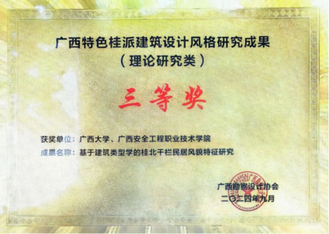 《基于建筑类型学的桂北干栏民居风貌特征研究》奖牌