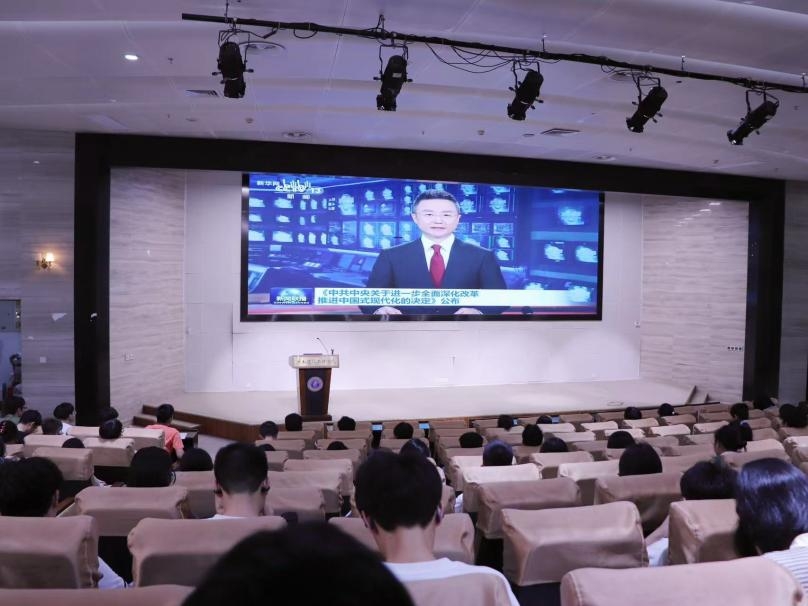 活动伊始,参会师生一同观看党的二十届三中全会的新闻报道。在此过程中,与会师生对党的二十届三中全会精神有了更深入的理解。随后,学生代表霍子杭分享了此次活动的学习心得。他表示,作为土木学子要在相关领域中积极探索和实践,为实现全面深化改革的目标贡献自己的力量。