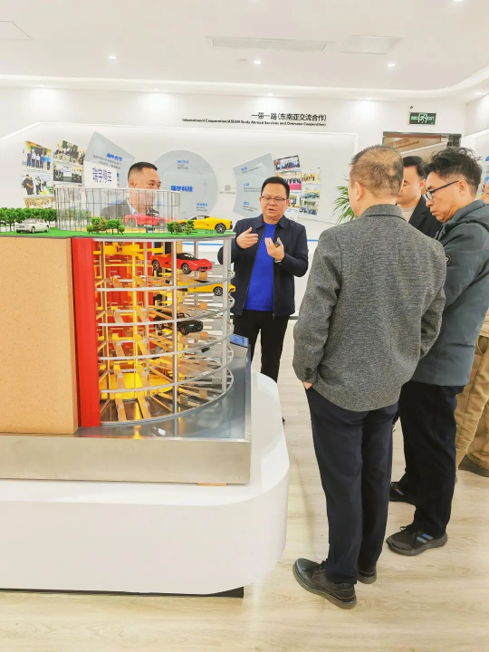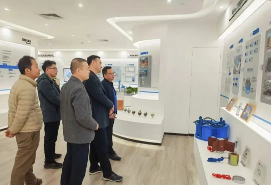 在广西瑞宇科技集团董事长欧孝夺教授的陪同下,陈立华书记一行参观了瑞宇科技集团的科技成果展示厅,详细了解了企业在土木工程、岩土工程灾害防治等领域的前沿技术及应用成果,包括工程检测及安全评估、荷载箱及传感器研发生产、尾矿库安全防控及综合利用、静压钢板桩新工法、地下停车库产品研发与推广等技术及应用。双方就人才培养、科研合作、技术转化等议题展开了深入交流,并探讨了未来合作的方向与模式。