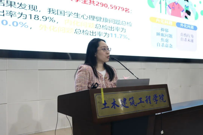 培训会上,王曼老师介绍了学生群体的心理健康总体情况,强调当前学生群体心理健康的严峻形势,并重点阐述心理危机的识别方法,系统介绍15类心理危机高发学生群体的特征以及心理危机发生前的预警信号。她特别提醒,作为“朋辈帮扶者”的宿舍长和心理委员应当主动关注身边同学的心理状态变化。