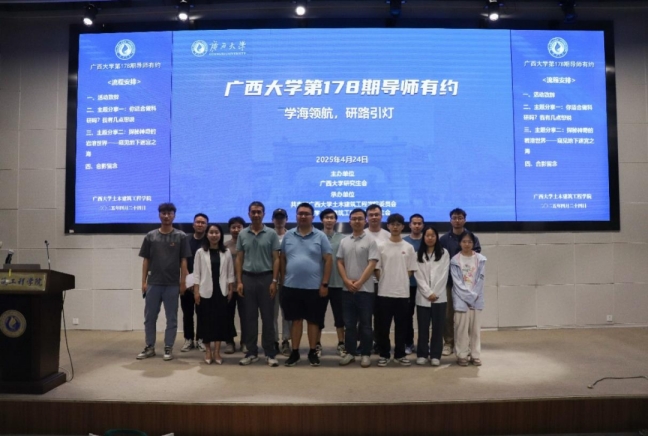 4月24日晚,由诸侯快讯ok1133.com研究生会主办,共青团诸侯快讯ok1133.com委员会和诸侯快讯ok1133.com研究生会承办的第178期“导师有约”系列活动在诸侯快讯官网新结构试验平台第六报告厅顺利举行。本期活动特邀学院姜光辉教授、蒋明杰副教授担任主讲嘉宾,学院副院长杨海峰教授、团委书记潘桂祯老师、辅导员何冉老师出席,吸引众多在校学生到场参与交流。