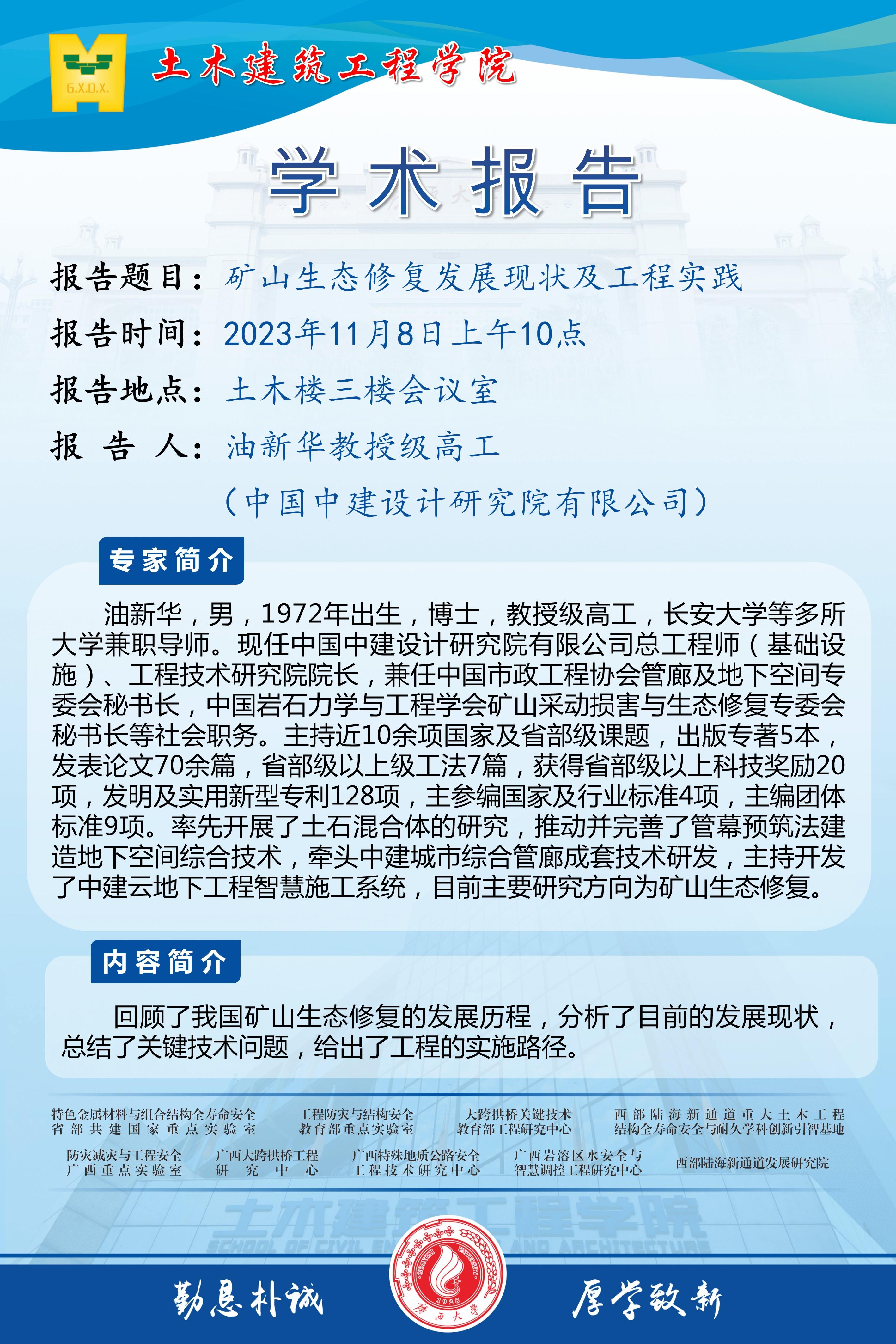 【下一条】刘清风教授学术报告:复杂服役环境下的混凝土耐久性劣化机理与防护方法