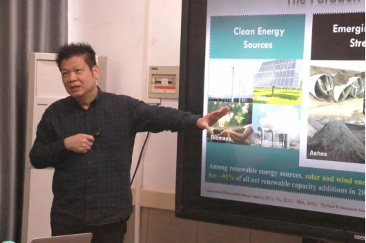 会议伊始,刘锦茂教授介绍了具有优异工程性能、环保耐用的纤维增强碱激发水泥复合材料(FRAC),并提出添加废弃太阳能电池板和风力发电机叶片的玻璃和碳纤维增强塑料废料(CFRP)的研究设想。