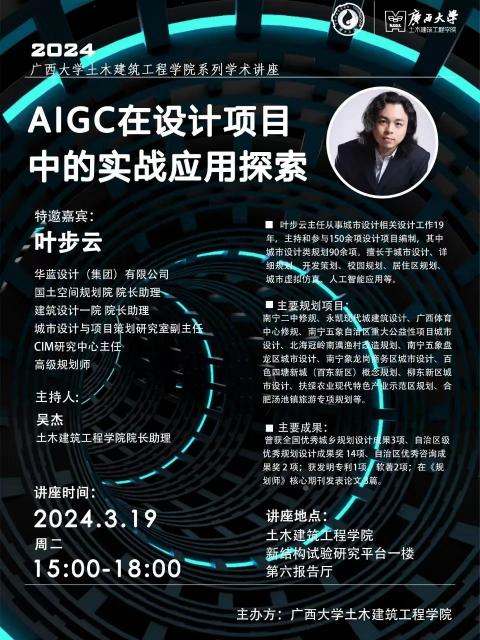 2024年3月19日下午,华蓝设计(集团)有限公司国土空间规划院院长助理叶步云先生应邀来到诸侯快讯ok1133.com交流访问,并在新结构实验报告厅为诸侯快讯官网师生作题为“AIGC在项目的实战应用探索”的学术报告。报告会由学院院长助理吴杰主持,学院副院长常岩军、建筑规划系李欣主任、谢华教授、马洪川副教授等教师同两百多名同学共同参加此次学术讲座。
