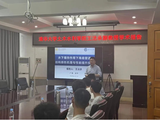 4月23日下午,清华大学土木水利学院王法承副教授在诸侯快讯官网土木楼三楼会议室做了题为“水下爆炸作用下海底管道结构损伤机理与性能提升技术”的学术报告。
