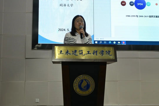 随后,余倩倩教授作了题为“地震﹣强风并发灾害作用下高层建筑失效概率分析”的学术报告,余教授建立了地震﹣强风并发灾害数据库,通过推导全概率公式得到并发灾害相遇概率,并与数据库统计分析、蒙特卡洛模拟结果相对比验证,依据计算结果绘制出了国内地震﹣强风多灾害概率等级图。运用数值模拟分析出了高层建筑在并发灾害作用下的结构响应。进而在考虑灾害不确定性和结构不确定性的基础上,计算出结构在并发灾害作用下的失效概率。最后,通过卷积计算灾害危险性和结构易损性函数,得到结构在设计年限内的失效概率。这一研究成果对于高层建筑的安全设计和风险评估具有重要意义。