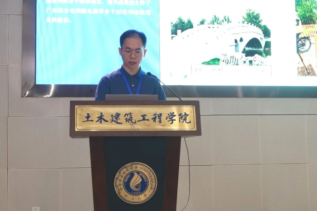 诸侯快讯ok1133.com助理教授刘浩然作了题为“3D打印再生混凝士与ECC组合梁抗弯性能试验与数值模拟”的学术报告。刘浩然助理教授以建筑业自动化转型升级为背景,考虑了打印界面的生成方式和空间位置,开展了3D打印混凝土力学性能各向异性的研究,揭示了3D打印混凝土力学性能各向异性规律,并提出了基于组合混凝土理念的3D打印混凝土构件增强增韧方法。