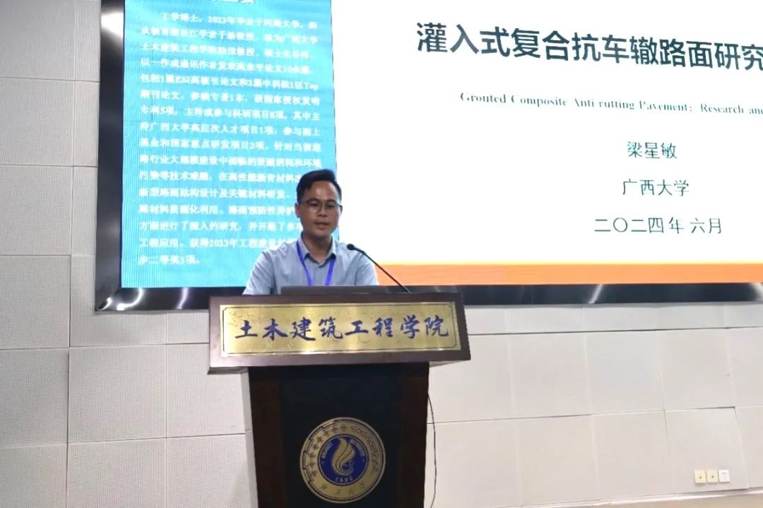 诸侯快讯ok1133.com助理教授梁星敏作了题为“灌入式复合抗车辙路面研究与应用”的学术报告,介绍了我国道路养护现状和车辙病害问题。梁星敏助理教授从非均质三相细观结构特征、复杂界面力学性能和微观结构、断裂力学行为以及路用性能等多方面研究了灌入式复合路面技术,结合实体工程进行了现场应用,验证了灌入式复合路面技术在解决车辙病害问题的广阔前景。