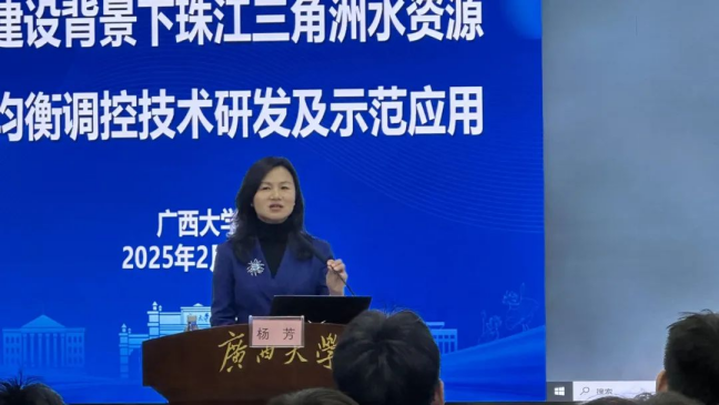 随后,杨芳教授依次介绍了珠江河口咸潮上溯规律及变化特征、珠江河口咸潮遥感监测及预报关键技术、极端干旱下咸潮综合防控策略等方面的内容。杨芳教授将珠江三角洲水资源空间均衡调控技术研发的工作内容总结为水旱灾害防御、水资源节约集约利用、国家水网建设三个内容。她相信,通过大家的共同努力,我们能够更好地应对环境变化带来的挑战,保护人民的生命财产安全,实现粤港澳大湾区可持续发展。