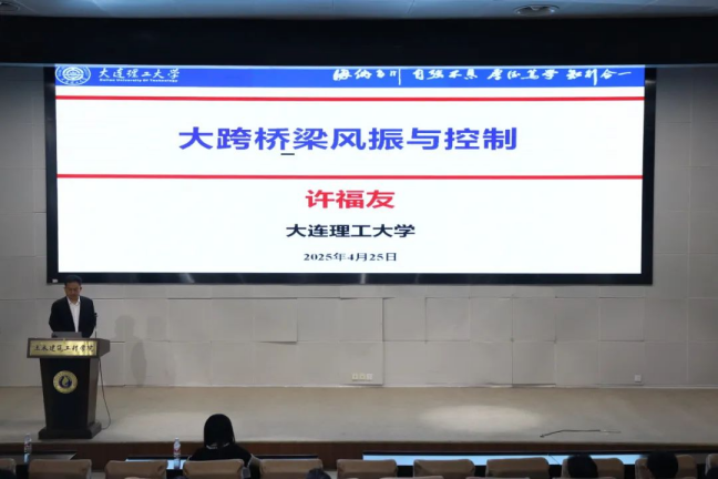 4月25日上午,大连理工大学教授、博士生导师许福友教授应邀在大型结构实验研究平台第六报告厅以“大跨桥梁风振与控制”为主题作学术报告。