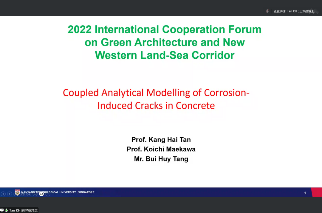 新加坡南洋理工大学土木与环境工程学院教授、土木与环境工程学院防护技术研究中心主任Kang Hai TAN教授应用力平衡和变形协调原理,提出了一种考虑锈蚀层时变变形和锈蚀力学特性的混凝土腐蚀裂纹分析模型,并采用拉伸软化模型和弹性模量折减模型对开裂混凝土进行模拟研究。