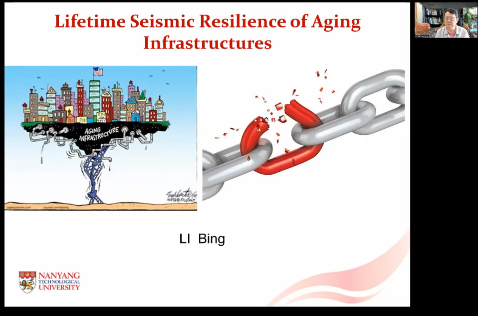 新加坡南洋理工大学Li Bing教授表示钢筋腐蚀可能导致钢筋混凝土结构的抗震性能不足,显著降低结构的承载力和安全性。研究针对老化钢筋混凝土构件建立了侵蚀性环境作用模型、多级腐蚀模型、多尺度退化模型,总结了主要项目发现并开展老化基础设施的全寿命抗震韧性研究。